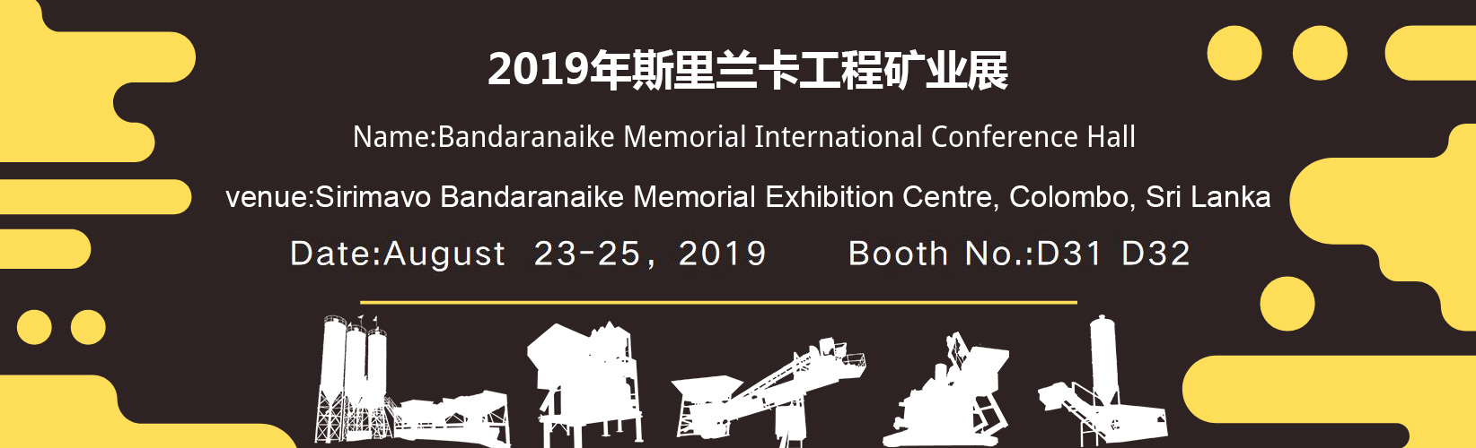 8月23日至25日 斯里兰卡工程矿业展即将在斯里兰卡Sirimavo Bandaraneke纪念展览中心举行,涉及行业有工程机械、路面设备、矿山机械、建筑机械等。届时建新机械将组织多款产品参加,目前正在做最后的准备工作,不久即将精彩亮相会场。